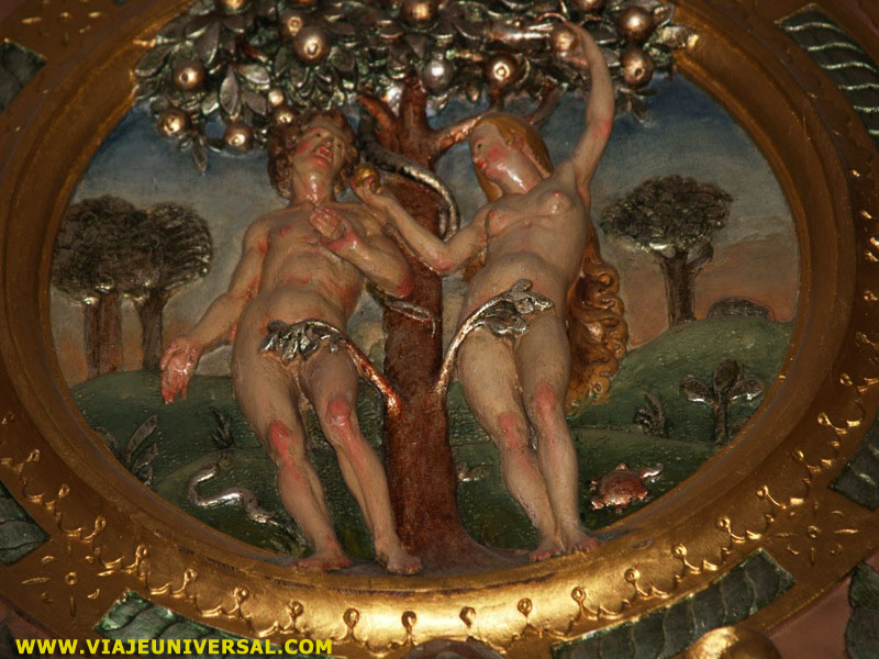 Relieve policromado Adán y Eva de la Iglesia de San Pedro de Malmö (Suecia)